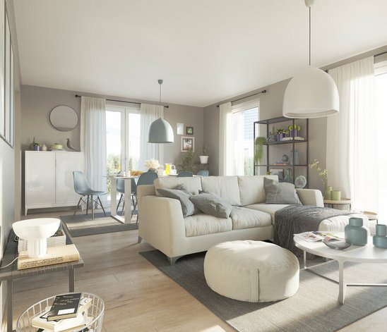 Auf rund 92 Quadratmetern können Bauherren Ihren Familienalltag dank cleverer Planung im lichtdurchfluteten Wohnzimmer mit Essbereich genießen. Das Wohnzimmer bietet direkten Zugang zum Garten und zur offenen Küche, die zum gemeinsamen Kochen einlädt. Das großzügige Schlafzimmer lässt Sie in die Welt der Träume entfliehen, während Sie sich Ruhe und Entspannung gönnen. Ob Büro, Gäste- oder Kinderzimmer – im Bungalow 92 können Sie als Familie Ihr Zuhause einrichten. Damit erfüllt sich der Wunsch nach einem barrierearmen Traumhaus für jetzt und später.