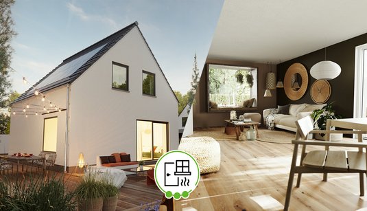 So kommt es, dass es neben kleineren Standardfenstern auch große Hebe-Schiebe-Elementen und sogar ein komfortables Sitzfenster gibt. Diese Kombination aus verschiedenen Formaten und Funktionalitäten sorgt dafür, dass das Raumwunder 100 hält,was es verspricht: Trotz seiner 98 m² verteilt auf zwei Etagen bietet das Massivhaus jede Menge Wohnkomfort, Lebensfreude undunterschiedliche Nutzungsmöglichkeiten. Ein Anbaumodul und die Überdachung des Eingangs sorgen auf Wunsch für noch mehr Flexibilität und Gemütlichkeit.